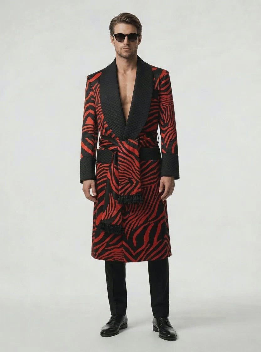 Silk Gown Tiger Print with Diamond Cut Lapels & Cuffs